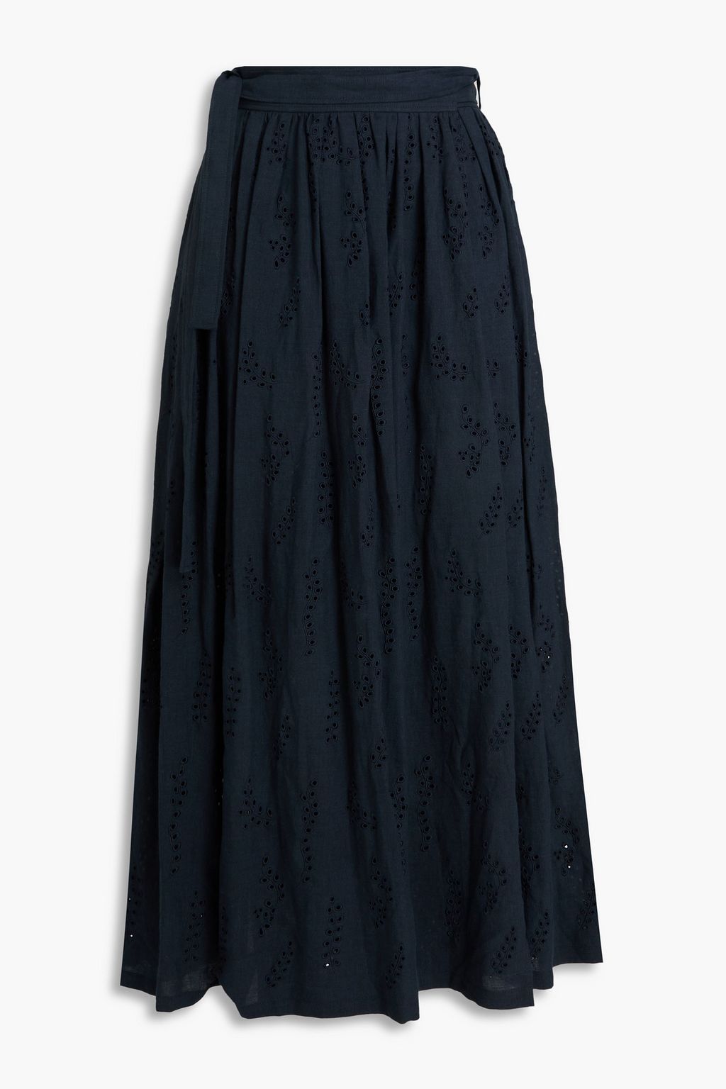 CHLOÉ X ERES Broderie anglaise linen midi wrap skirt
