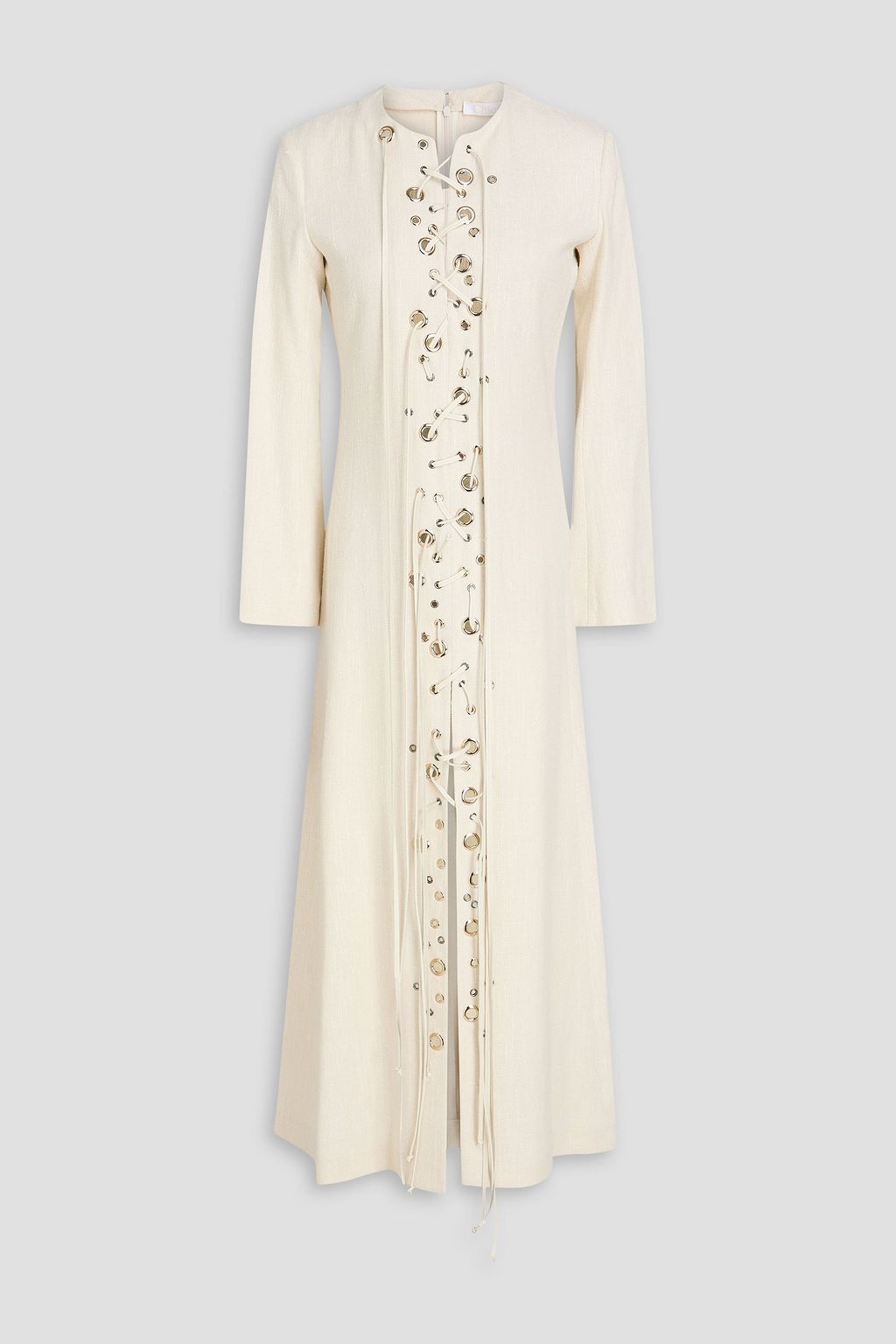 CHLOÉ Lace-up silk-blend canvas midi dress