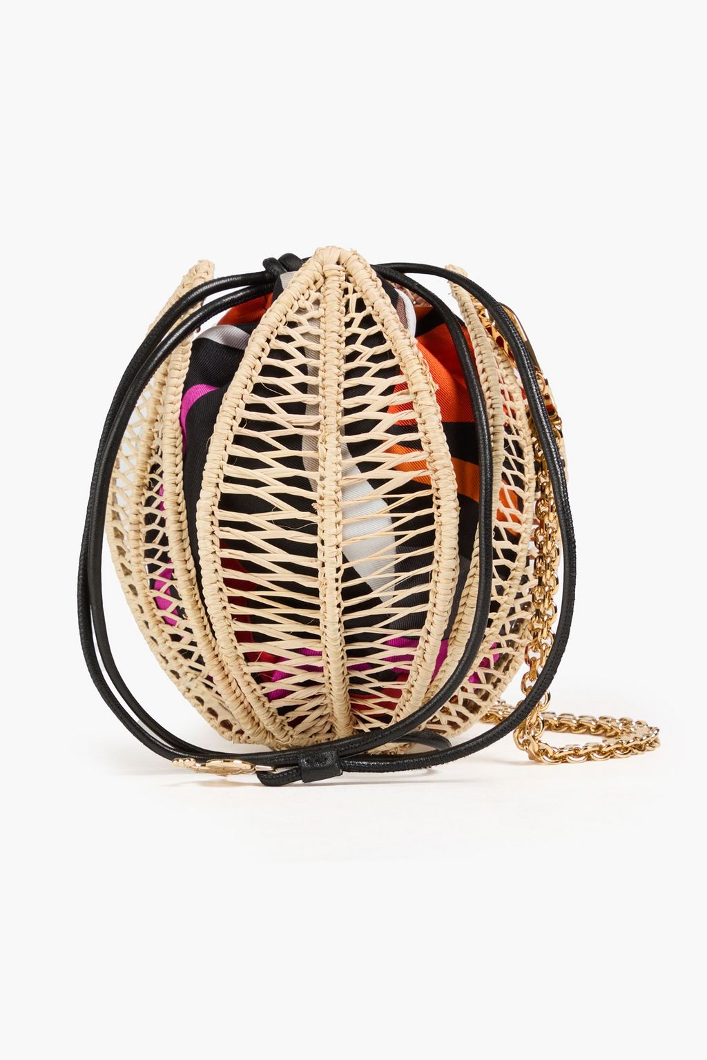 PUCCI Printed twill and straw bucket bag