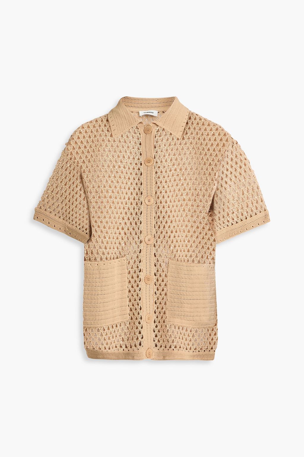 SANDRO Sequin-embellished open-knit polo sweater