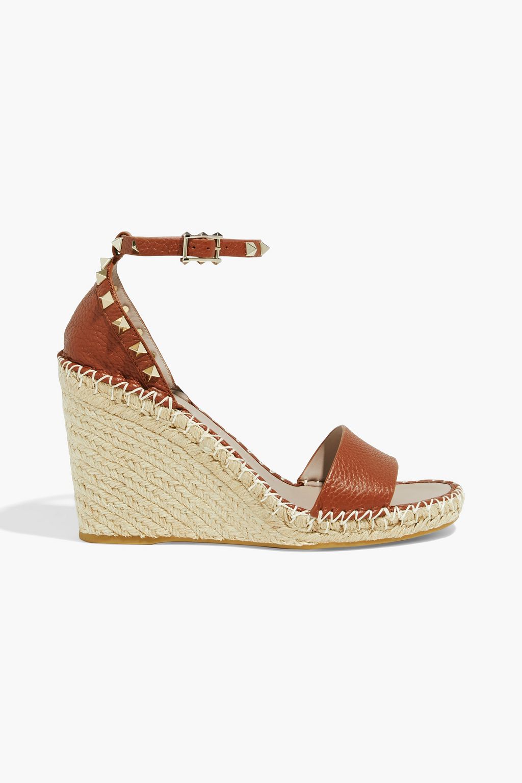 VALENTINO GARAVANI Rockstud pebbled-leather wedge espadrille sandals