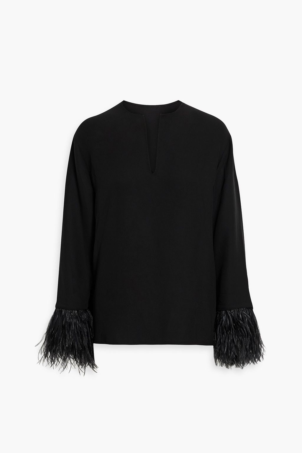 VALENTINO GARAVANI Feather-trimmed silk-crepe top
