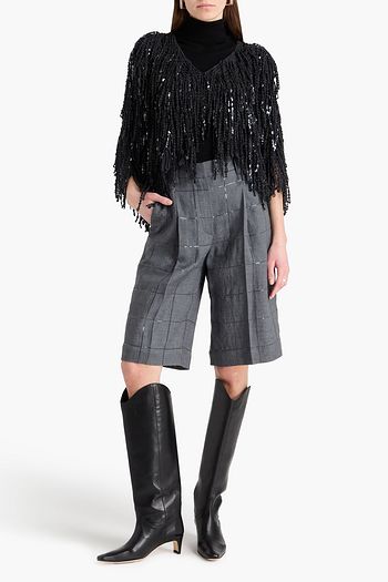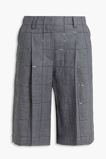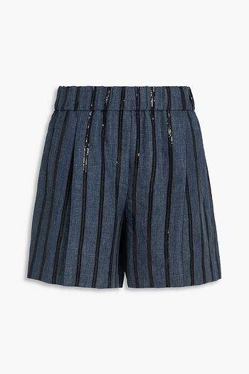 Bead-embellished denim shorts