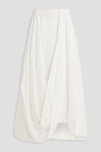 Draped pinstriped wool and cotton-blend felt midi skirt