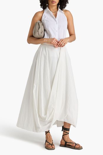 Pleated cotton-blend poplin midi skirt