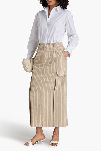Pinstriped wool and cotton-blend twill midi pencil skirt