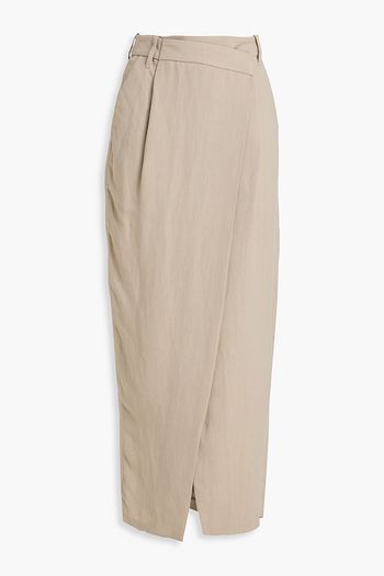Pleated twill midi wrap skirt