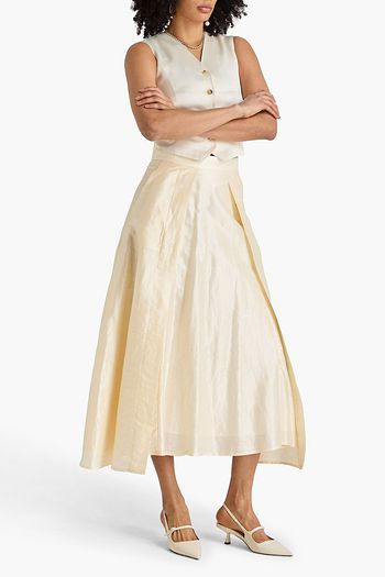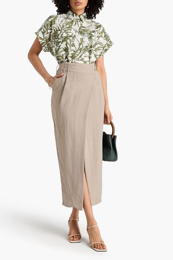 Cotton and linen-blend midi skirt