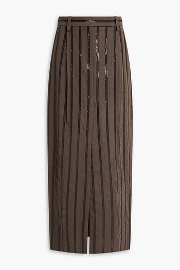 Metallic sequin-embellished linen-blend midi skirt
