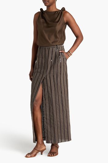 Fringed sequin-embellished linen and silk-blend skirt