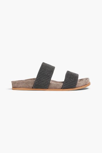 Bead-embellished suede slides
