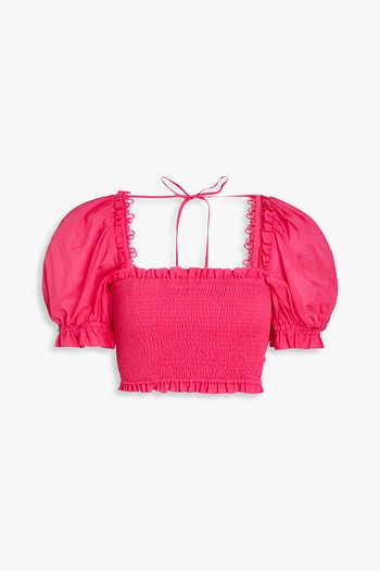 Valencia cropped broderie anglaise cotton-blend top