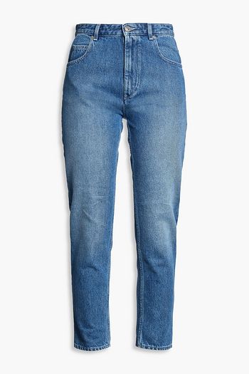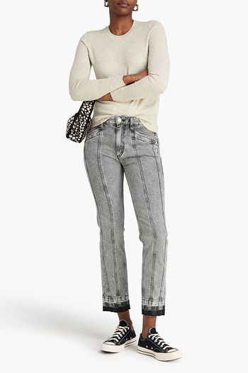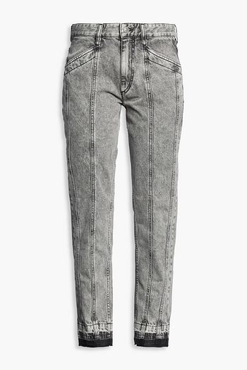 Hominy pintucked acid-wash high-rise slim-leg jeans