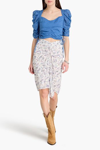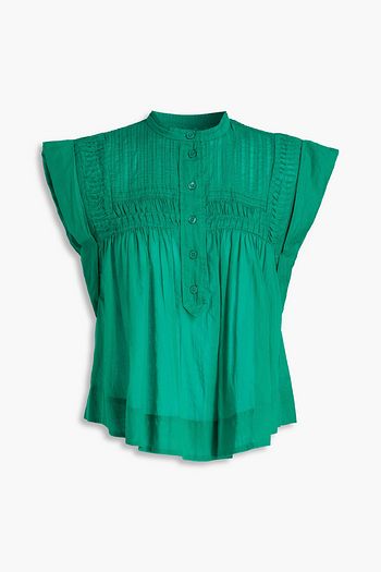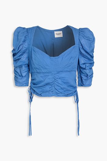 Daline shirred cotton-chambray top