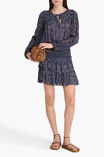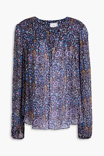 Shirred floral-print crepon blouse
