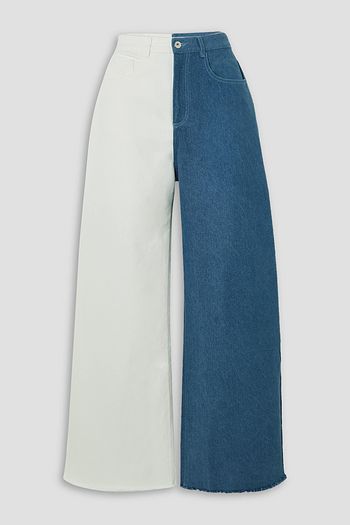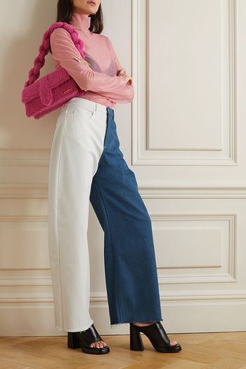 Asymmetric feather-embellished ribbed-knit midi skirt
