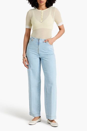 Embellished ribbed wool and cashmere-blend mock-neck sweater