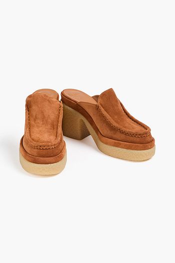 Crystal-embellished suede platform loafers