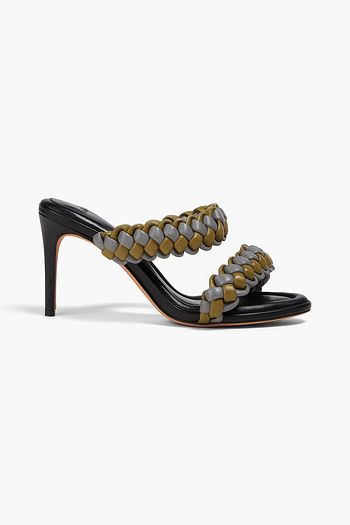 Gilda Glass crystal-embellished PVC and mirrored-leather mules