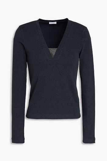 Bead-embellished striped cotton and silk-blend poplin shirt