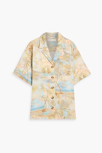 Pensamiento Botanico cropped floral-appliquéd linen top