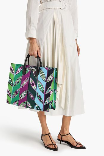 Leather-trimmed canvas tote