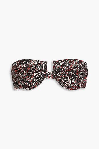 Ruched floral-print stretch-piqué underwired bandeau bikini top