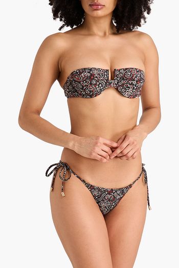 Ruched printed stretch-piqué underwired bandeau bikini top