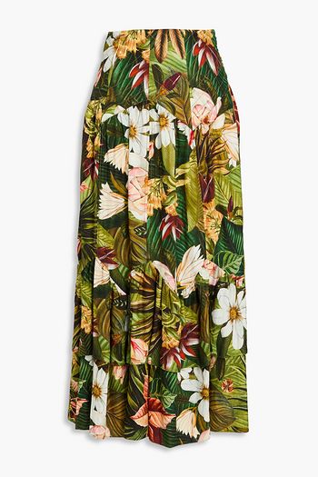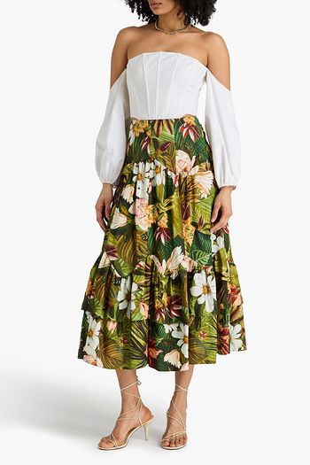 Printed cotton-poplin midi skirt