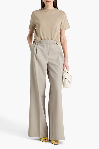 Pleated grain de poudre straight-leg pants