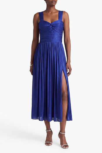 Belted metallic georgette maxi dress