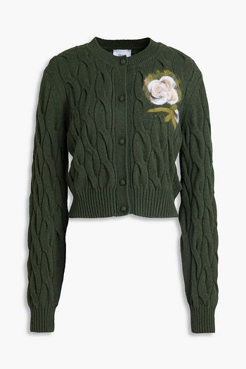 Floral-print cable-knit wool-blend cardigan