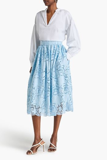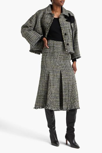 Fringed fil coupé cotton-blend jacquard midi pencil skirt