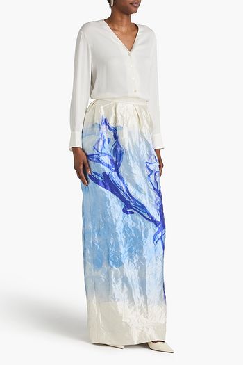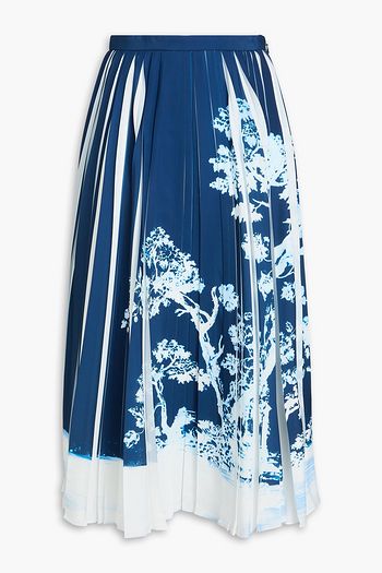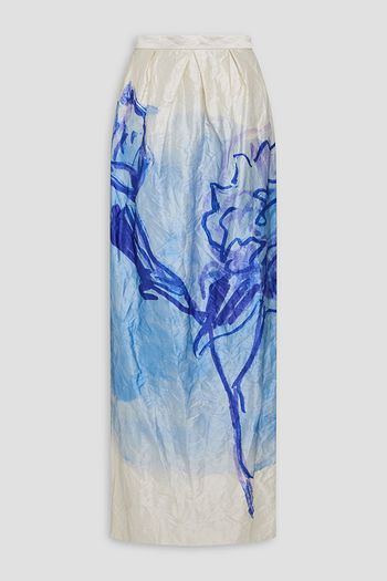 Pleated printed satin-twill maxi skirt