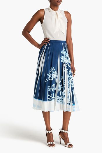 Pleated floral-print silk-voile midi skirt