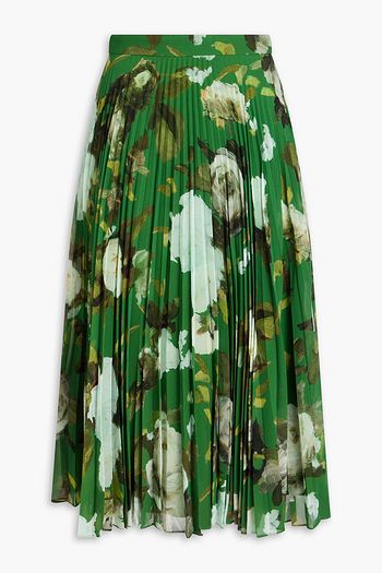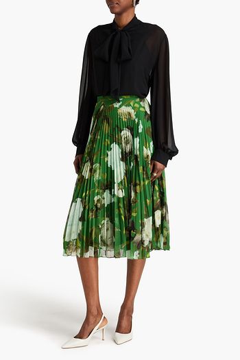 Pleated floral-print chiffon midi skirt