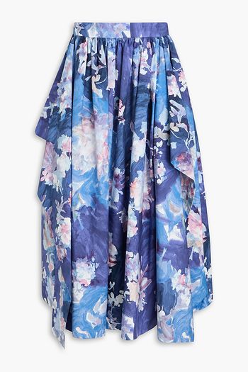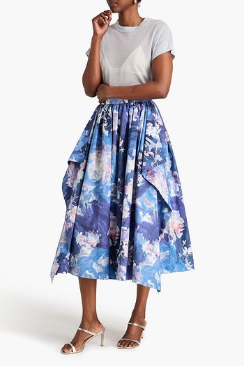 Draped floral-print crinkled-taffeta midi skirt