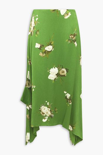 Draped floral-print crepe midi skirt
