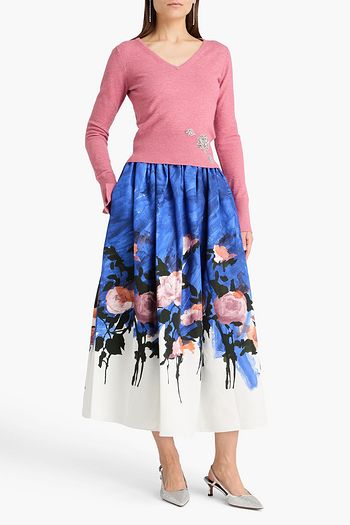 Floral-print cotton-blend faille midi skirt