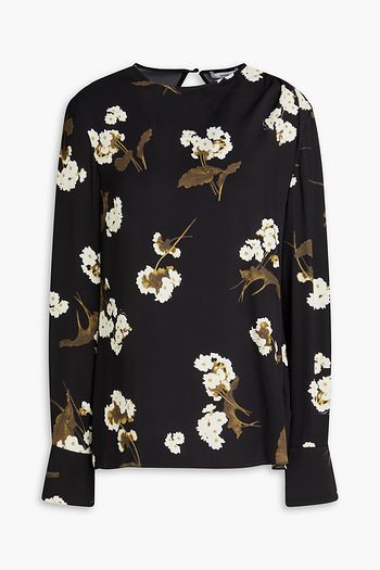Floral-print crepe de chine blouse