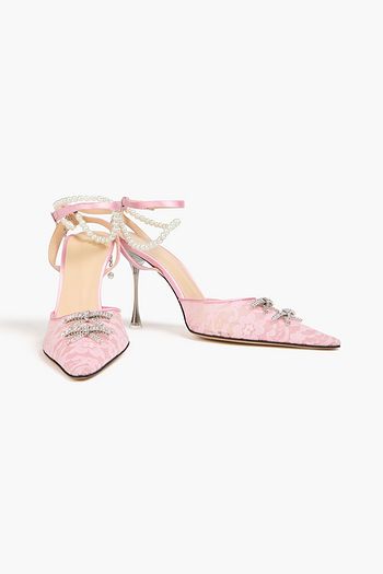 Embellished Chantilly lace pumps