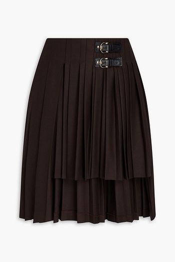 Embellished asymmetric pleated twill skirt