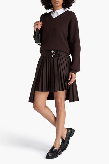 Pleated cotton-blend twill mini skirt