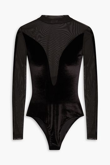 One-shoulder bead-embellished ribbed-knit bodysuit