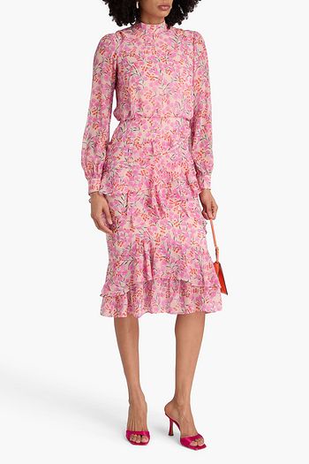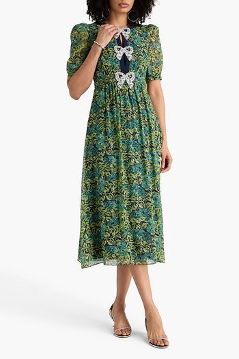 Ruffled floral-print crepon midi dress
