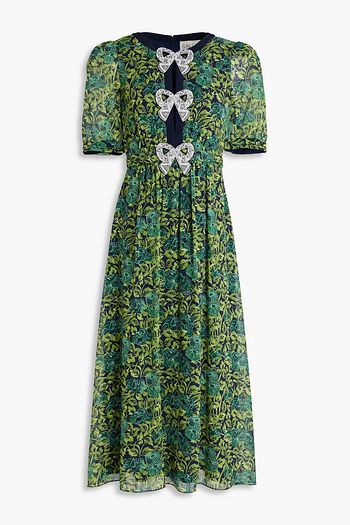 Crochet-trimmed floral-print cotton-voile midi dress