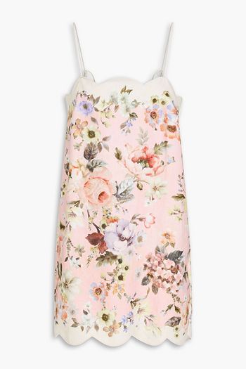 Shirred printed cotton-voile mini dress
