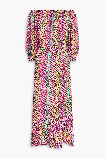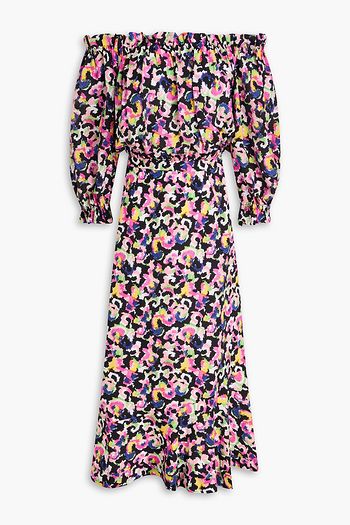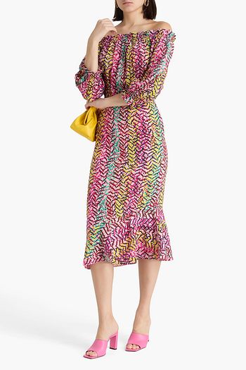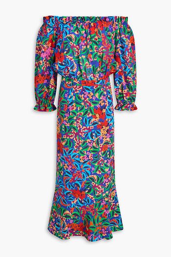 Grace off-the-shoulder polka-dot silk crepe de chine midi dress