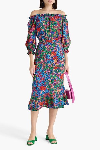 Grace off-the-shoulder floral-print silk crepe de chine mini dress