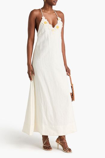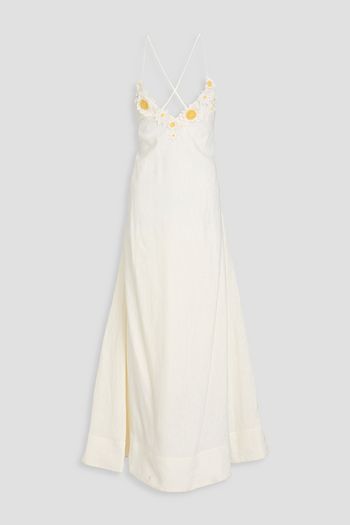 Floral-appliquéd embroidered cotton-blend midi dress
